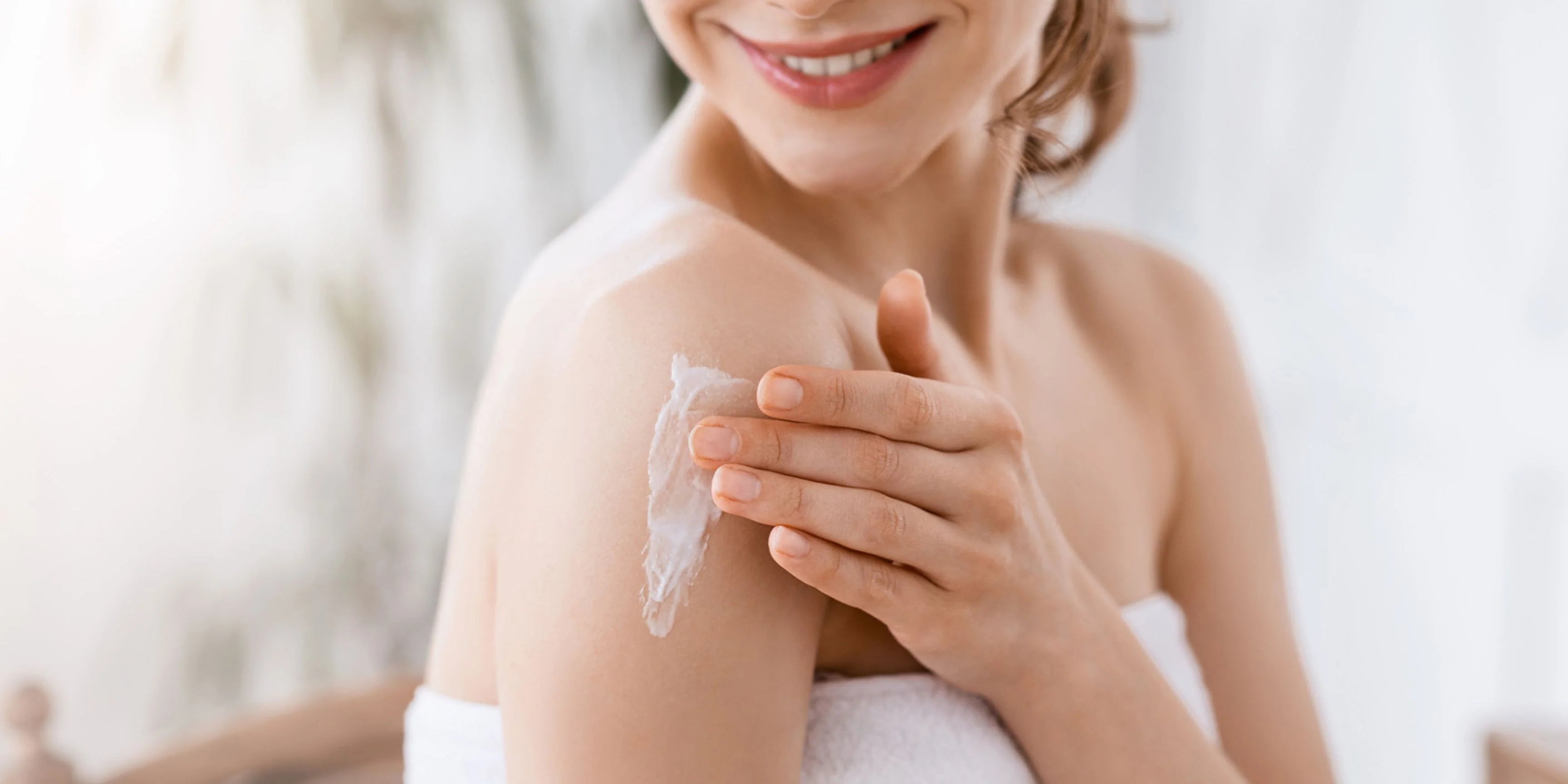 - Aplique una pequeña cantidad en las áreas afectadas (brazos, cuello, pecho o cualquier lugar donde aparezca piel arrugada).